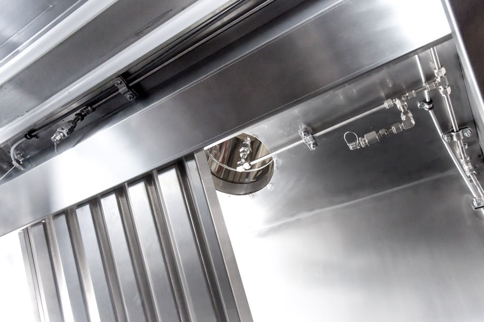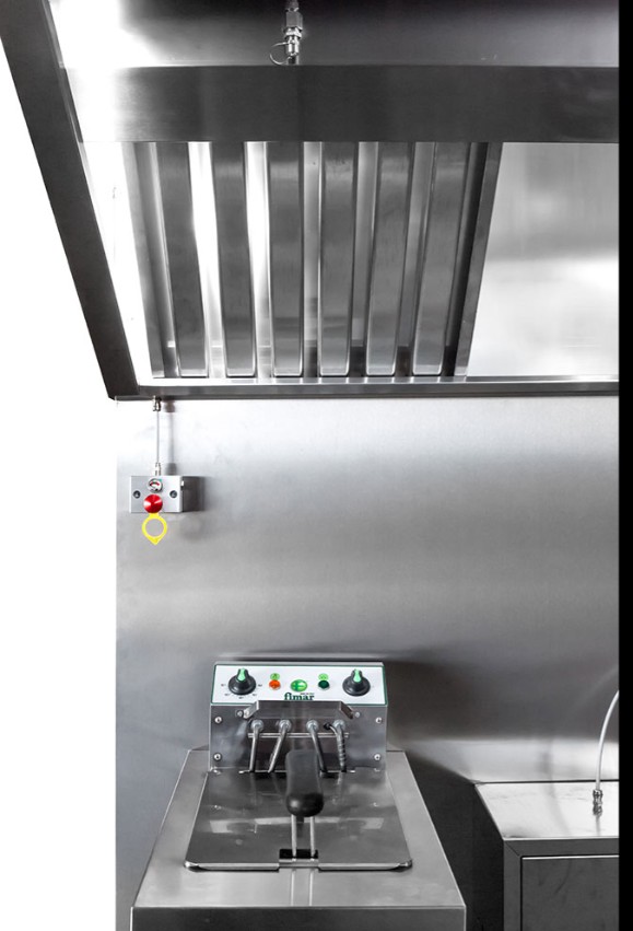 Το σύστημα κατάσβεσης επαγγελματικών μαγειριών χρησιμοποιεί ένα κατάλληλα σχεδιασμένο κατασβεστικό υλικό ειδικό για λίπη και έλαια. Το κατασβεστικό αυτό υλικό διακόπτει τη χημική αλυσιδωτή αντίδραση που προκαλεί η καύση, κατασβήνοντας έτσι τη φωτιά. Η εκτόνωση γίνεται σε πολύ λεπτή ομίχλη (mist) επιτυγχάνοντας με αυτό τον τρόπο την μείωση της θερμοκρασίας του λαδιού κάτω από την θερμοκρασία αυτόματης αυτανάφλεξης του και τελικώς σβήνοντας την φωτιά. Το σύστημα ενεργοποιείται αυτόματα κατά την ανίχνευση πυρκαγιάς ή μπορεί να ενεργοποιηθεί χειροκίνητα με τη χρήση ενός απομακρυσμένου μοχλού χειροκίνητης ενεργοποίησης που τοποθετείται στο σημείο εξόδου από την επικίνδυνη περιοχή. Όταν το σύστημα ενεργοποιηθεί, μια προκαθορισμένη ποσότητα πυροσβεστικού υλικού εκτονώνεται μέσω του δικτύου σωληνώσεων και των ακροφυσίων προς την φούσκα, τους αεραγωγούς καθώς και τις συσκευές μαγειρέματος. Το Σύστημα έχει σχεδιαστεί για να παρέχει πυροπροστασία σε επαγγελματικές συσκευές μαγειρέματος, απορροφητήρες και φούσκες. Πρόκειται για ένα pre-engineered σύστημα κατάσβεσης αποτελούμενο από μηχανικά και ηλεκτρικά μέρη. Ο βασικός εξοπλισμός του συστήματος περιλαμβάνει το κατασβεστικό υλικό το οποίο εμπεριέχεται μέσα στο δοχείο, τον πίνακα ενεργοποίησης, τα ακροφύσια, τους εύτηκτους συνδέσμους ή το γραμμικό καλώδιο ανίχνευσης τον μοχλό χειροκίνητης ενεργοποίησης κ.λπ. Ο σχεδιασμός του συστήματος για τις εστίες κάτω από την φούσκα επιτρέπει την ομοιόμορφη τοποθέτηση των ακροφυσίων από το ένα άκρο της γραμμής των συσκευών μέχρι το άλλο. Οι περισσότερες συσκευές κάτω από τον απορροφητήρα μπορούν να προστατευθούν με αυτό, επομένως δεν είναι απαραίτητο να προστατευτεί κάθε συσκευή ξεχωριστά. Με αυτό τον τρόπο οι συσκευές μπορούν να μετατοπιστούν ελεύθερα κάτω από τον απορροφητήρα και να αναδιαμορφωθούν ανά πάσα στιγμή χωρίς να επηρεάζεται η αποτελεσματικότητα του συστήματος. Επίσης το σύστημα είναι ικανό να απενεργοποιεί συσκευές όπως ανεμιστήρες καυσαερίων, ηλεκτρικά συσκευές, κ.λπ. Με το σύστημα παρέχονται εξαρτήματα όπως οπτικοακουστικοί συναγερμοί, μοχλός απομακρυσμένης ενεργοποίησης κ.λπ. Η αυτόματη ενεργοποίηση του συστήματος πυρόσβεσης μπορεί να γίνει με τη βοήθεια των εύτηκτων συνδέσμων ή του γραμμικού καλωδίου ανίχνευσης, όταν η θερμοκρασία υπερβεί την ονομαστική τιμή του αισθητήριο αισθητήρα, τότε ο πίνακας ενεργοποίησης ενεργοποιεί το σύστημα. Εκδόσεις συστήματος Υπάρχουν δύο (2) διαθέσιμες τύποι οι οποίες μπορούν να προσφερθούν είτε με μηχανικούς (Fusible Links) είτε με ηλεκτρικούς συνδέσμους (Γραμμικό καλώδιο ανίχνευσης) – όπου και τα δύο συστήματα έχουν κατασκευαστεί σύμφωνα με τα πρότυπα NFPA & UL.